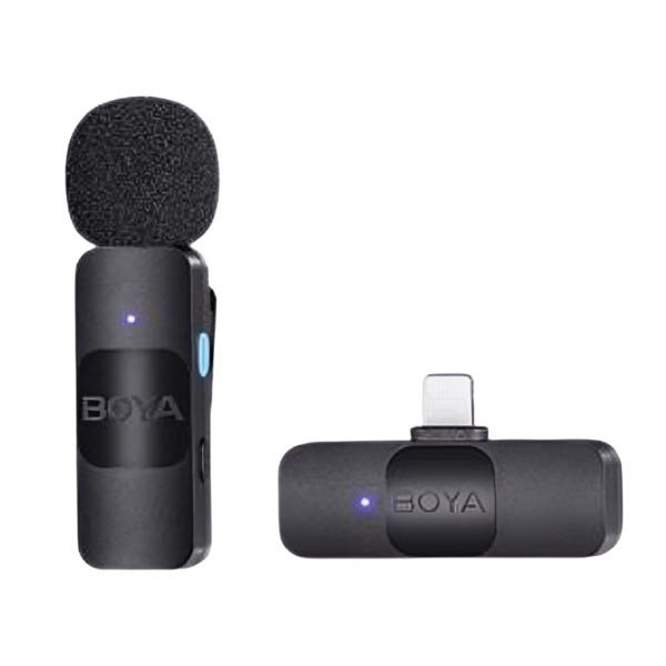 The BOYA BY-V1 Ultracompact 2.4GHz Wireless Microphone for iOS Devices is a compact, professional-grade wireless microphone system designed specifically for iPhone and iPad users. Utilizing the 2.4GHz frequency band, it ensures stable and interference-free wireless audio transmission for a range of up to 50 meters (164 feet) in open areas. The clip-on transmitter features a built-in omnidirectional microphone, providing clear and natural sound capture, while the lightning receiver plugs directly into your iOS device for seamless audio recording. This plug-and-play system is ideal for vloggers, content creators, and journalists who need hassle-free, high-quality wireless audio for interviews, podcasts, live streaming, and more. With a lightweight, ultra-compact design, the BY-V1 is easy to carry and use on the go.