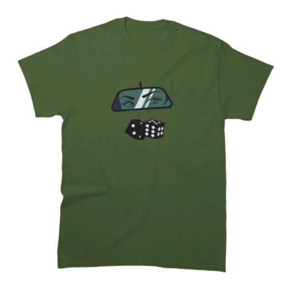 Add a playful touch to your wardrobe with the Dipping Rear View Mirror with Dices Classic T-Shirt. This stylish tee features a vibrant graphic of a classic rearview mirror adorned with dangling dice, bringing retro vibes and a sense of nostalgia to any outfit. Designed for comfort and durability, this T-shirt is perfect for casual outings, themed events, or simply showcasing your love for vintage car culture.