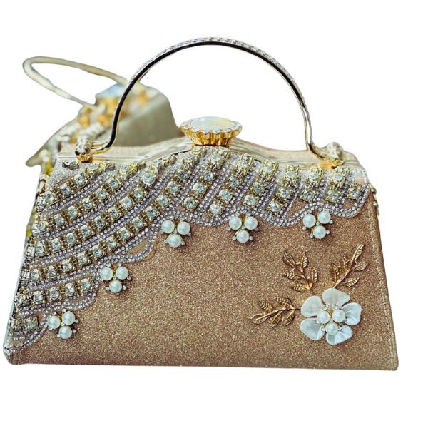 Enhance your style with this elegant hand purse designed for girls and women. Featuring exquisite stonework, this purse effortlessly combines traditional craftsmanship with contemporary design. It is perfect for parties, weddings, or casual outings, adding a sparkling touch to your ensemble. The compact yet spacious design allows you to carry your essentials like cash, cards, mobile, and makeup items with ease. Lightweight and durable, this purse is an ideal choice for those who value fashion and practicality.