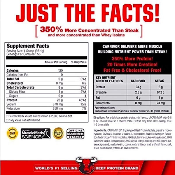 MuscleMeds Carnivor Beef Protein offers a unique and effective way to increase your protein intake while enjoying the benefits of beef protein without the drawbacks. Its powerful formulation, rapid absorption, and great taste make it an excellent choice for anyone serious about their fitness goals.