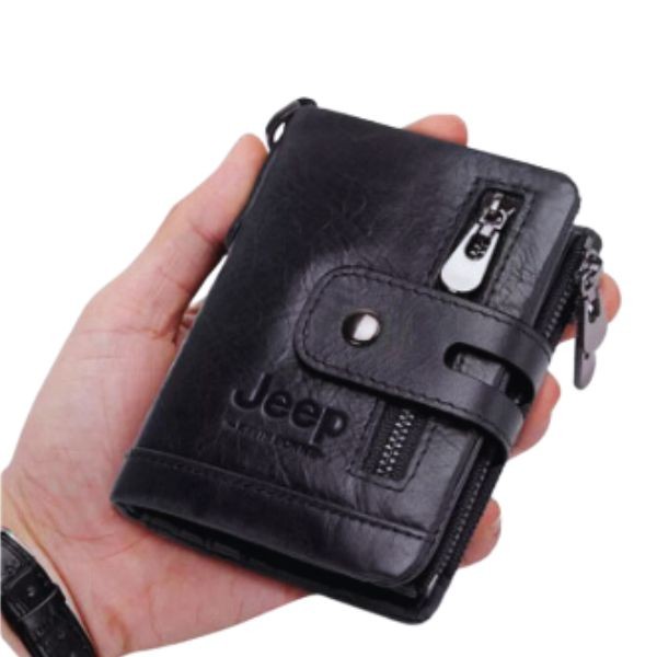 The 100% Leather Jeep Black Wallet for Men is a stylish and functional accessory designed for modern gentlemen. Made from premium-quality genuine leather, this wallet combines elegance, durability, and practicality. Its sleek black finish complements any outfit, making it suitable for both casual and formal occasions. The wallet features the iconic Jeep logo embossed on the front, adding a touch of rugged sophistication.