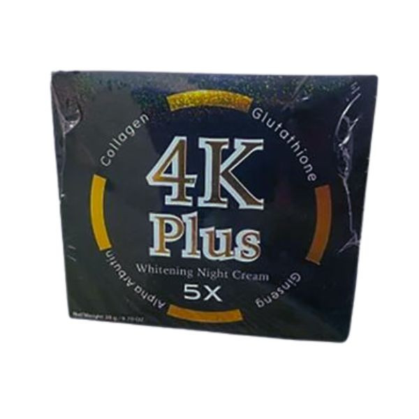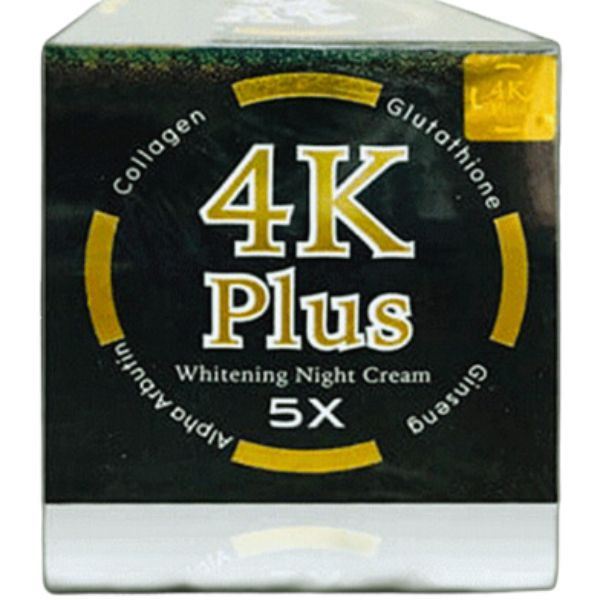 The 4K Plus Whitening Night Cream 5X is a popular skincare product from Thailand designed to help brighten the skin, reduce dark spots, and even out skin tone. It contains a blend of active ingredients that target hyperpigmentation, fine lines, and dullness while moisturizing the skin. The product is suitable for daily night-time use, as it works while you sleep to enhance the skin's natural repair processes. With five times the whitening effect, this cream is particularly known for its potency and effectiveness in promoting a radiant, youthful complexion.