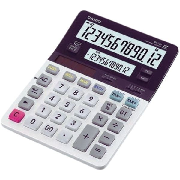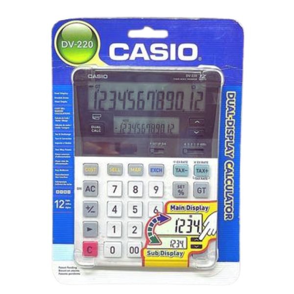 The Casio DV-220 is a versatile dual-display desktop calculator designed for enhanced efficiency and convenience in daily calculations. Featuring a unique dual-screen functionality, it allows users to compare values side-by-side or perform separate calculations simultaneously. This makes it particularly useful for professionals, students, and anyone requiring accurate and efficient multi-step computations.