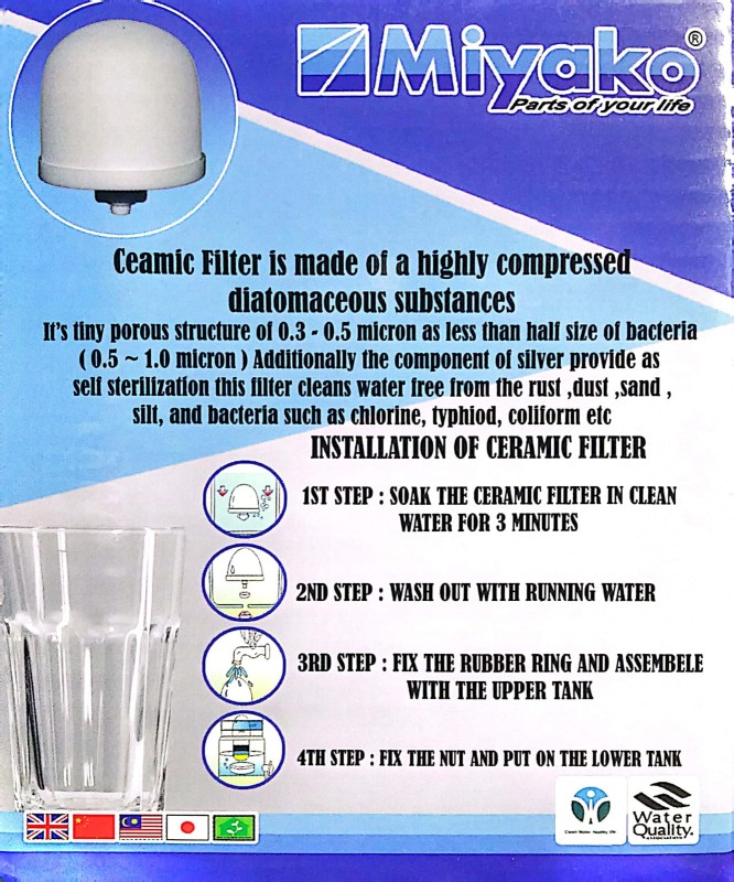 The ceramic filter dome is secured inside the top tank. When contaminated water is poured in the filter, it will trap dirt, debris, contaminants, and most bacteria before the water passes to the “clean” side of the filter to ensure that your water is free from any harmful diseases such as typhoid, cholera, and dysentery. Instructions We encourage our customers to clean this filter at least once a month or as frequently as necessary, depending on the quality of your local municipal water. A layer of trapped dirt and gunk would accumulate on the surface, clogging the pores of the filter and slowing down the drainage of the water. The ceramic filter dome should be handled with care. Do not use the ceramic filter if it is cracked or damaged.