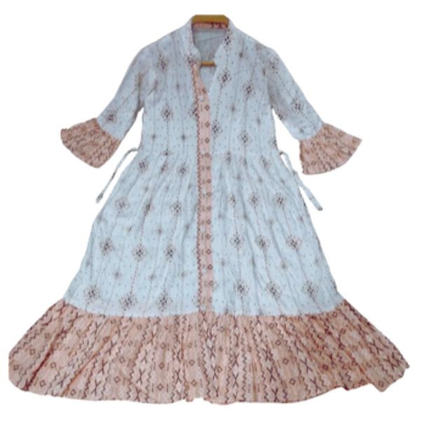 China Linen Fabrics Screen Print One Piece Long Gown For Women