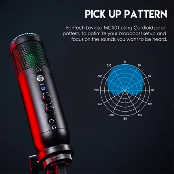 The Fantech MCX01 Wired Condenser Microphone delivers professional-grade audio for a variety of applications, with its easy-to-use USB interface and high-quality cardioid sound capture making it an ideal tool for content creators and gamers looking to elevate their audio experience.