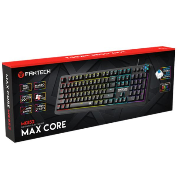The Fantech MK852 Mechanical Keyboard is designed for gamers and typists alike, providing an exceptional typing experience with its high-quality mechanical switches. This keyboard features customizable RGB lighting, allowing users to personalize their setup with vibrant colors and effects. The sturdy construction ensures durability, making it suitable for long gaming sessions and intensive typing tasks. With its ergonomic design and anti-ghosting technology, the MK852 delivers precision and comfort, making it an ideal choice for those seeking performance and aesthetics.