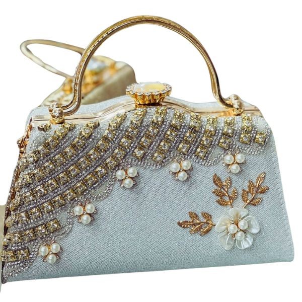 Enhance your style with this elegant hand purse designed for girls and women. Featuring exquisite stonework, this purse effortlessly combines traditional craftsmanship with contemporary design. It is perfect for parties, weddings, or casual outings, adding a sparkling touch to your ensemble. The compact yet spacious design allows you to carry your essentials like cash, cards, mobile, and makeup items with ease. Lightweight and durable, this purse is an ideal choice for those who value fashion and practicality.