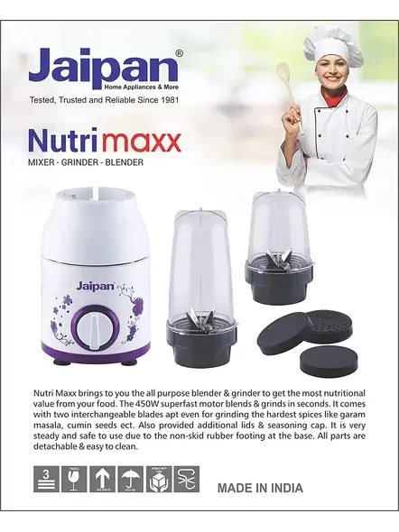 Jaipan Nutri Maxx Mixer Grinder (White) (450 Watts)