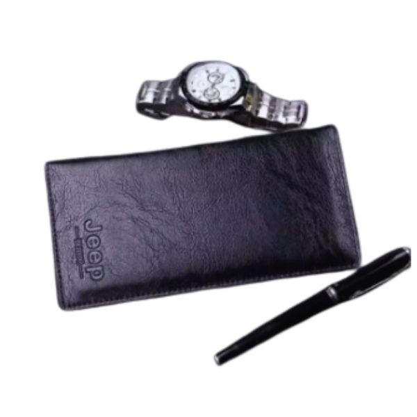 The Jeep Black Leather Long Wallet for Men is a sleek and stylish accessory designed for modern gentlemen who value sophistication and functionality. Crafted from premium quality black leather, this wallet exudes a refined elegance that complements both casual and formal attire. Its durable construction ensures long-lasting use while maintaining its sophisticated appeal. Perfect for organizing your essentials, it is an ideal companion for daily use or travel.