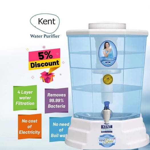 KENT Gold+ is a gravity based water purifier that purifies water better than boiled water with hollow fibre UF membrane that does not allow any bacteria and cysts to pass through. This makes drinking water pure without any use of chemicals like chlorine, bromine, or iodine. This purifier is best suitable for tap and municipal corporation water supply.