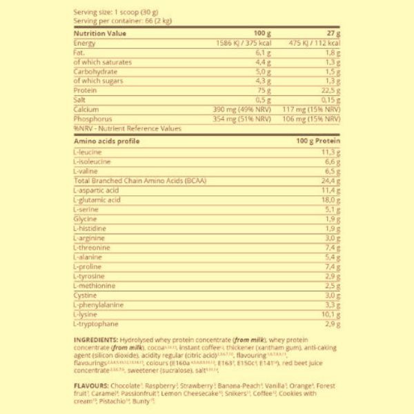 Protein Content: Each serving (30 grams) delivers 22.5 grams of protein, aiding in muscle development and recovery.