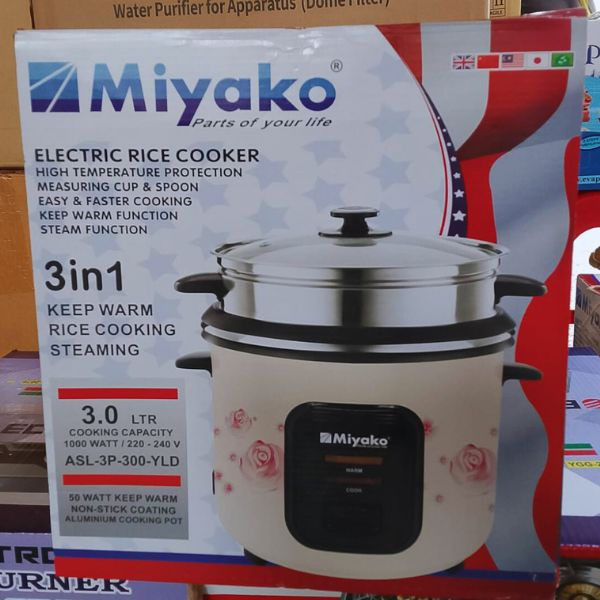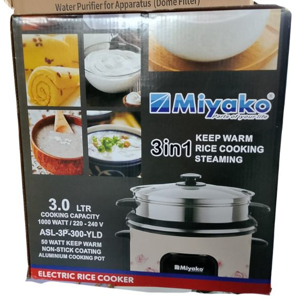 The Miyako ASL-3P-300 YLD Rice Cooker is a versatile and efficient kitchen appliance designed to make cooking rice and other meals hassle-free. With a 3-liter capacity, it is suitable for medium-sized families or gatherings. The rice cooker is equipped with advanced features for even cooking, ease of use, and durability, making it a reliable choice for everyday use. Its sleek design complements modern kitchens while its practical functionality ensures perfectly cooked rice every time.