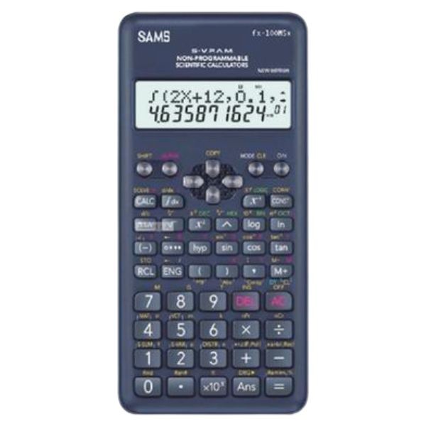 The SAMS (Fx-100MS x) New Edition Scientific Calculator is a high-performance, user-friendly scientific calculator designed for students, engineers, and professionals who require advanced mathematical and statistical calculations. With a sleek, modern design, this calculator features enhanced functions that cater to a wide range of applications, from basic arithmetic to complex trigonometric, logarithmic, and statistical operations. The New Edition boasts a clear, easy-to-read display, efficient button layout, and extended memory functions, making it an indispensable tool for academics and professionals alike.