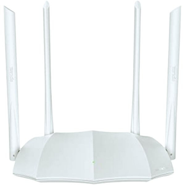 The Tenda AC5 AC1200 Smart Dual-Band WiFi Router is a high-performance wireless router designed to meet the growing connectivity needs of smart homes. With dual-band technology, it delivers reliable speeds of up to 1167 Mbps (300 Mbps on 2.4 GHz + 867 Mbps on 5 GHz), ensuring a seamless internet experience for streaming, gaming, and browsing. The router is equipped with four external antennas for enhanced signal coverage, allowing devices to stay connected throughout the home.