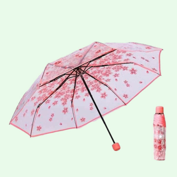 Three Fold Transparent Umbrella Cherry Blossom Korean Version