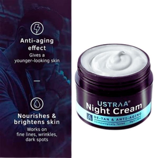 The Ustraa Night Cream is designed specifically for men, offering intense hydration and nourishment to rejuvenate the skin overnight. Infused with a blend of powerful natural ingredients, this night cream helps restore skin vitality by improving texture and reducing signs of aging. Free from harmful chemicals like parabens and sulfates, this cream supports the skin’s recovery from daily environmental damage, giving it a fresh, youthful appearance. Its non-greasy formulation makes it perfect for all skin types, leaving your skin soft, smooth, and revitalized by morning.